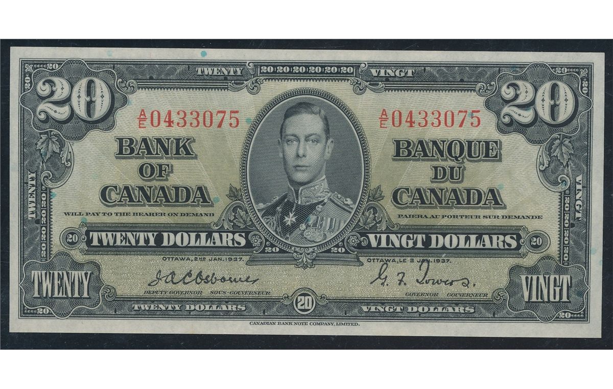 1937 $20 BC-25a #AE0433075, PMG Gem UNC66.
