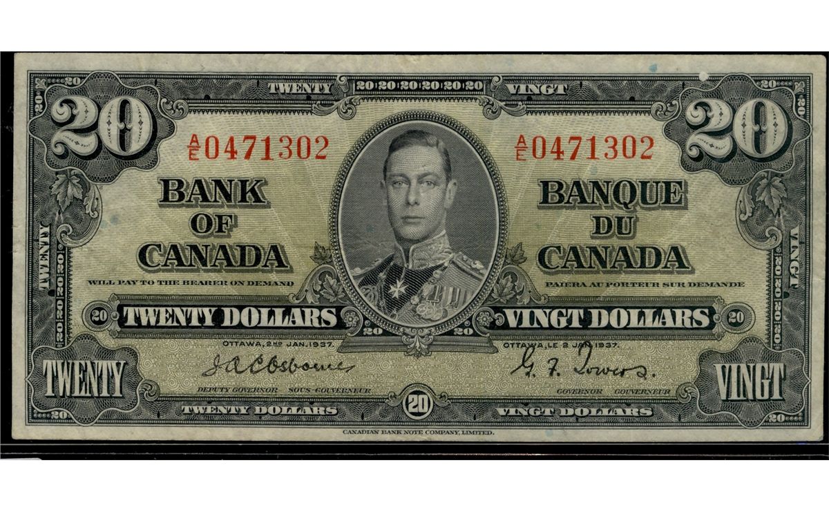 1937 $20 BC-25a #AE0471302. VF for grade.