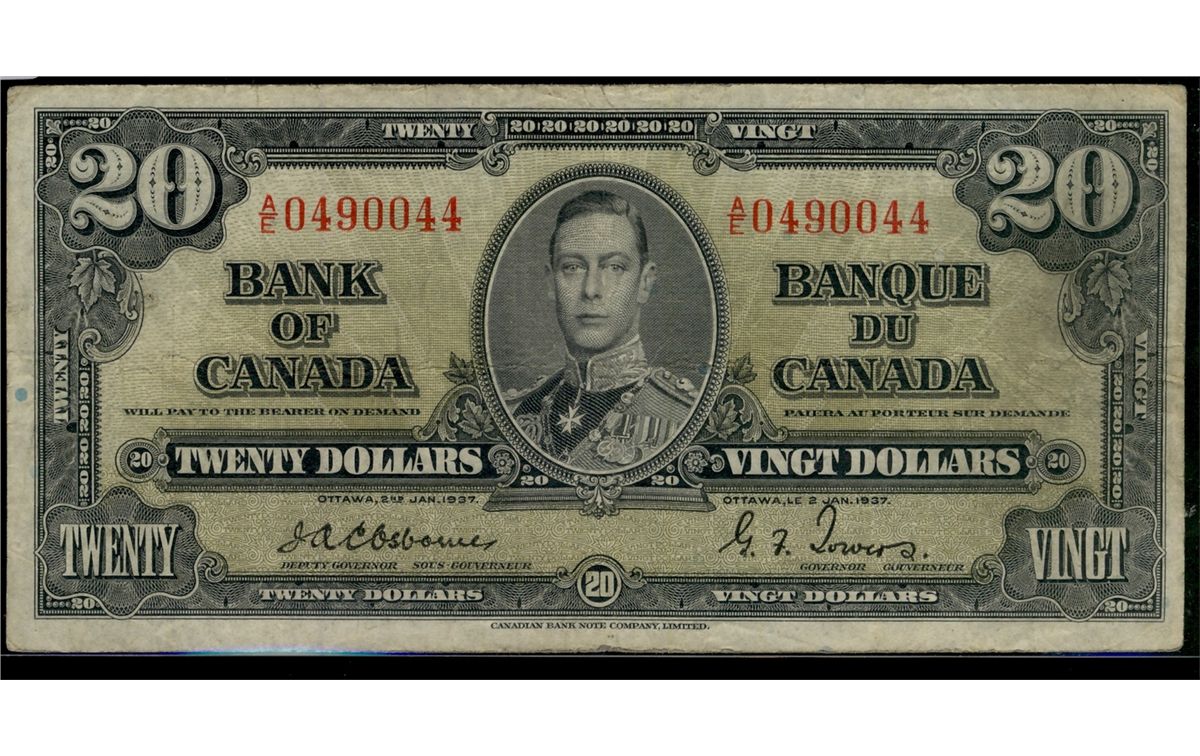 1937 $20 BC-25a #AE0490044. Fine+ for grade.