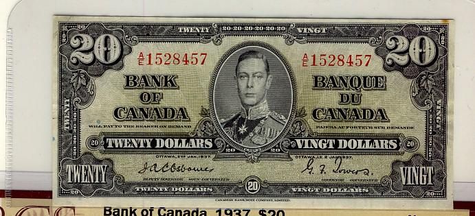 1937 $20 BC-25a #AE1528457. Osborne issue VF/VF+