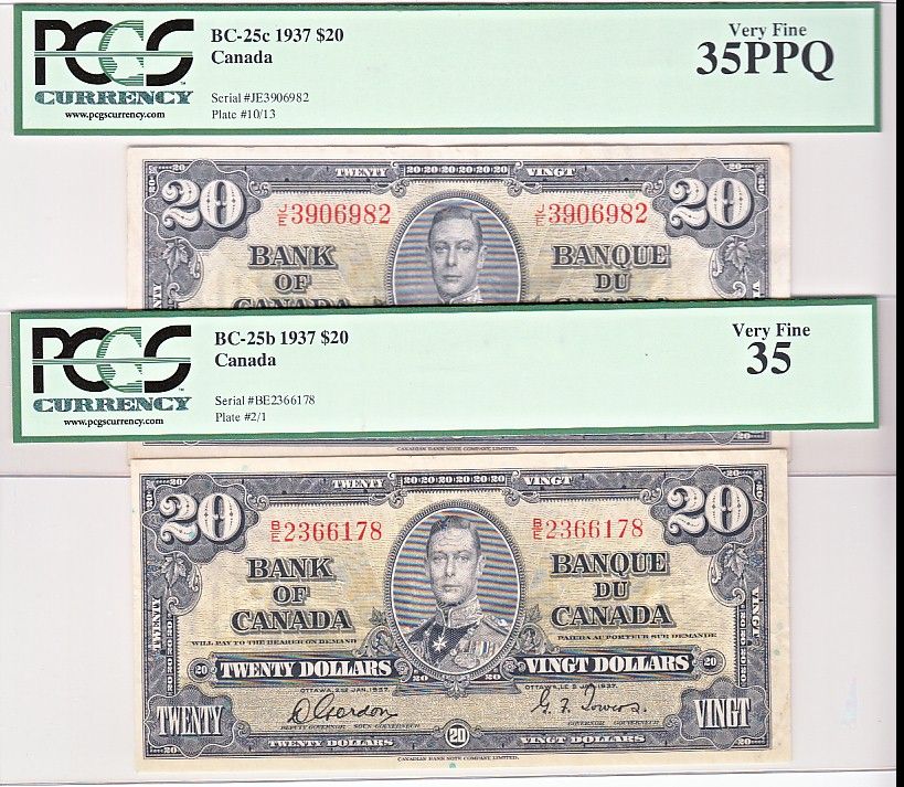 1937 $20 BC-25b & BC-25c PCGS VF35. Lot of 2 notes.
