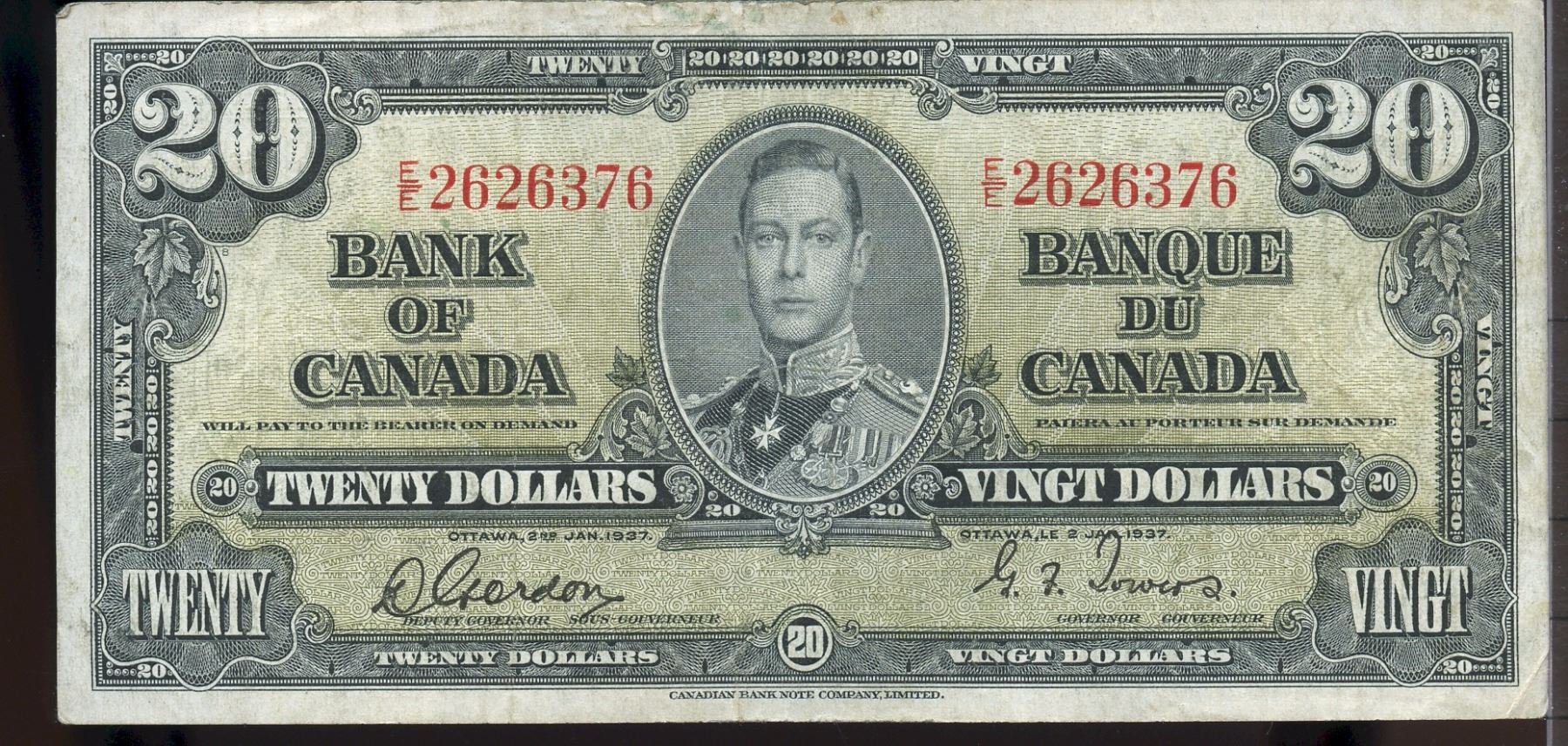 1937 20$ BC-25b #E/E2626376, a nice VF/VF+ for grade.