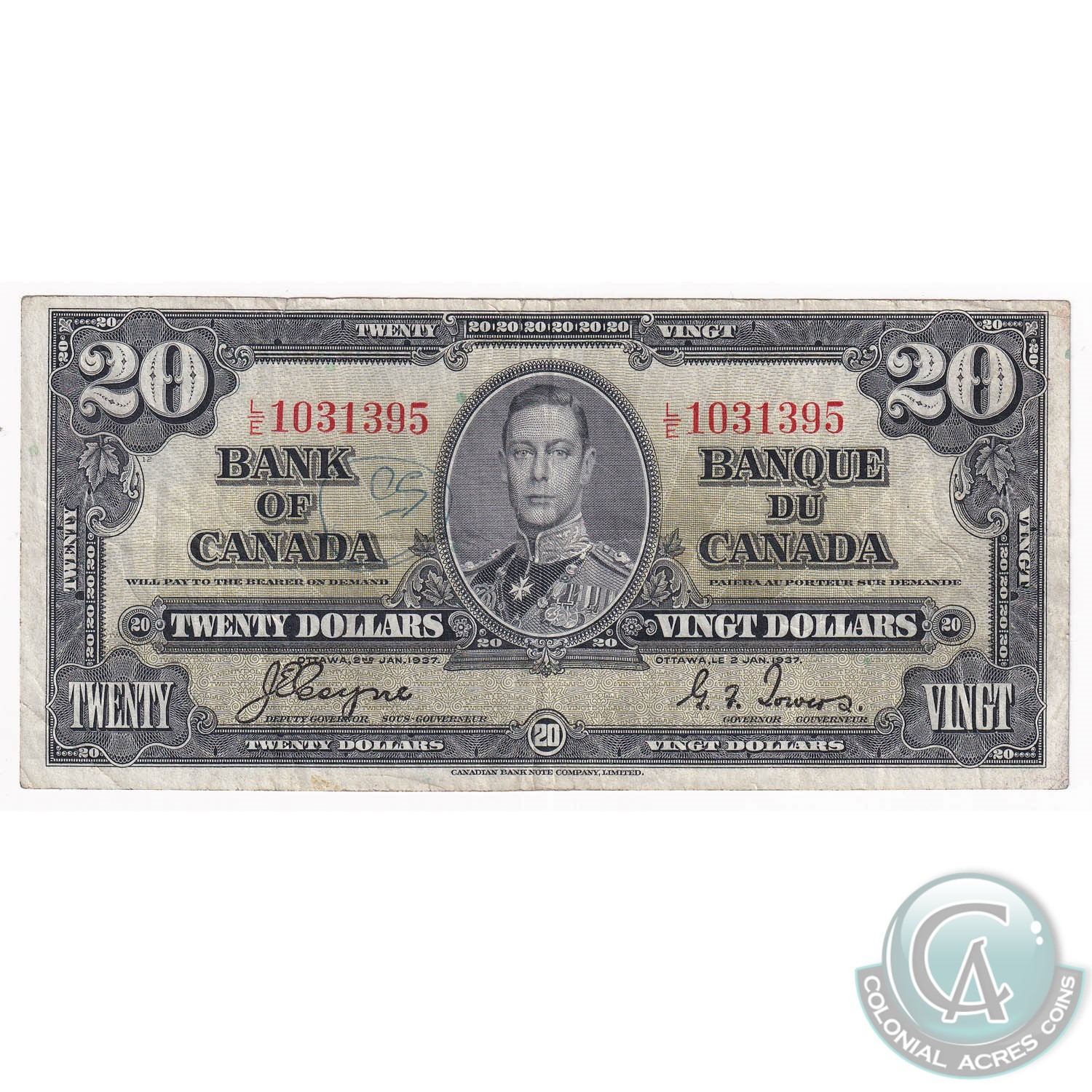 1937 $20 BC-25c, Bank of Canada, Coyne-Towers, L/E Prefix, F-VF (damaged)