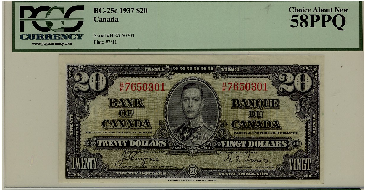 1937 $20 BC-25c H/E7650301 PCGS AU58PPQ