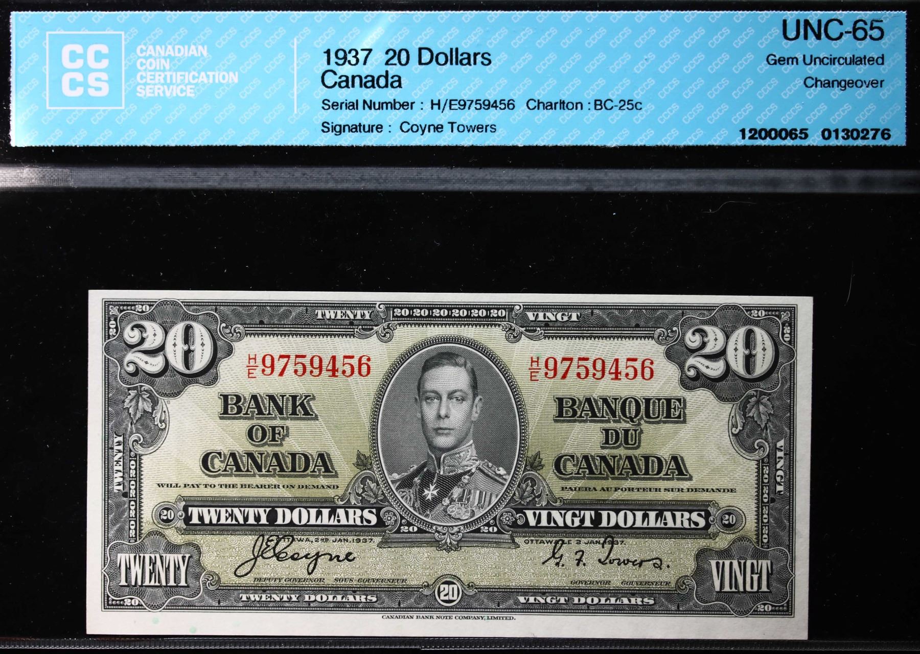 1937 $20 BC-25c #H/E9759456 CCCS Gem Uncirculated-65