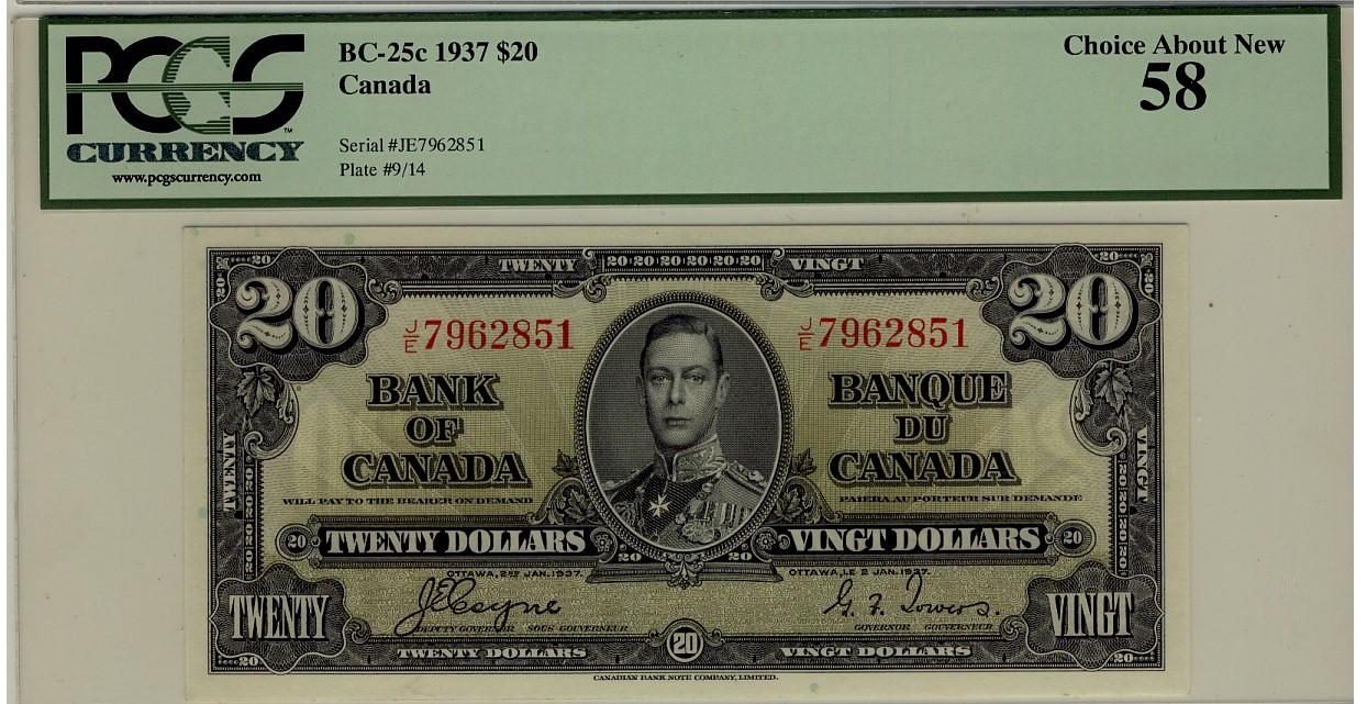1937 $20 BC-25c J/E7962851 PCGS AU58