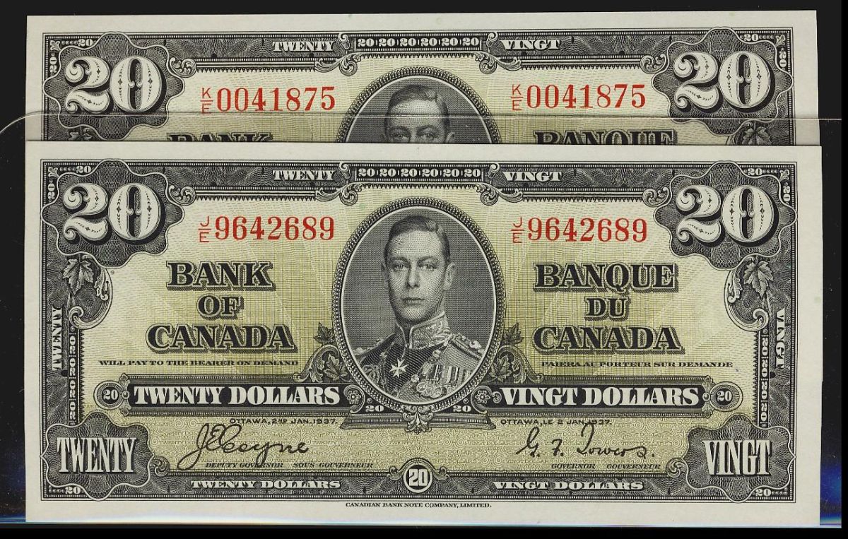 1937 $20 BC-25c #KE0041875 & JE9642689. Lot of two crisp notes AU-UNC