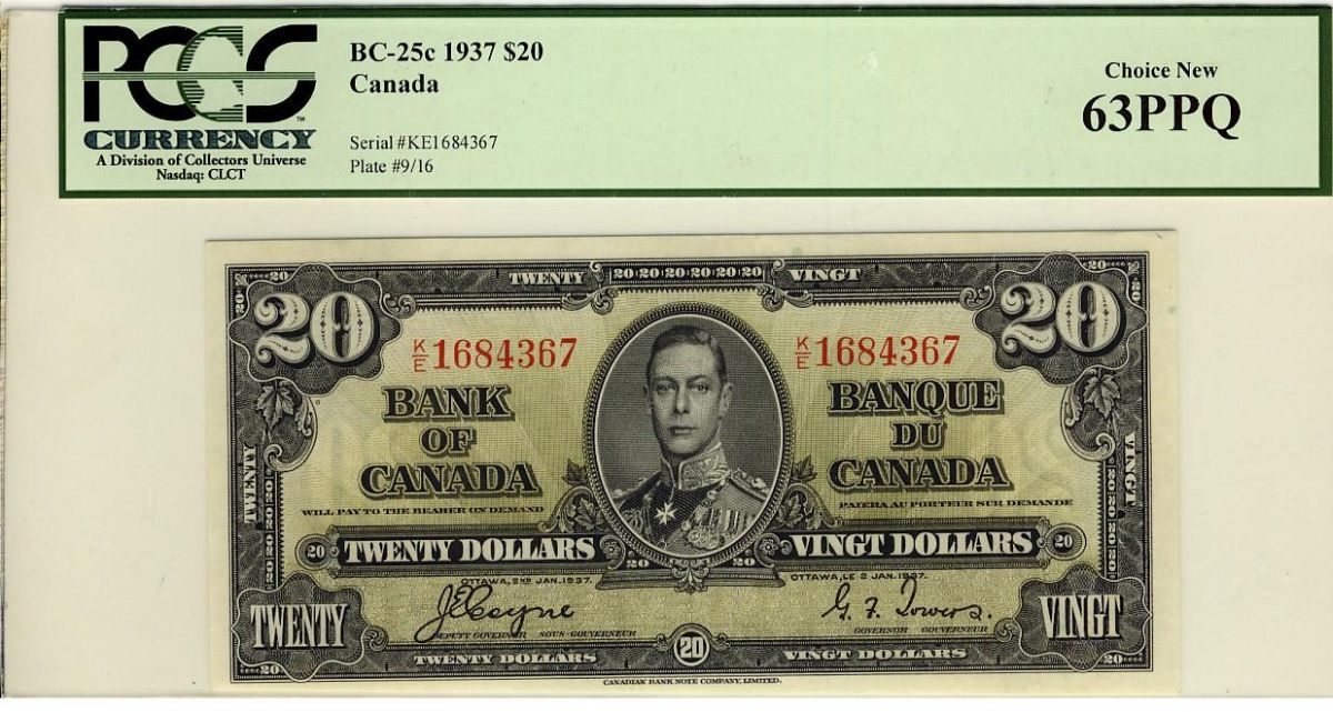 1937 $20 BC-25c #KE1684367, PCGS UNC63 PPQ.
