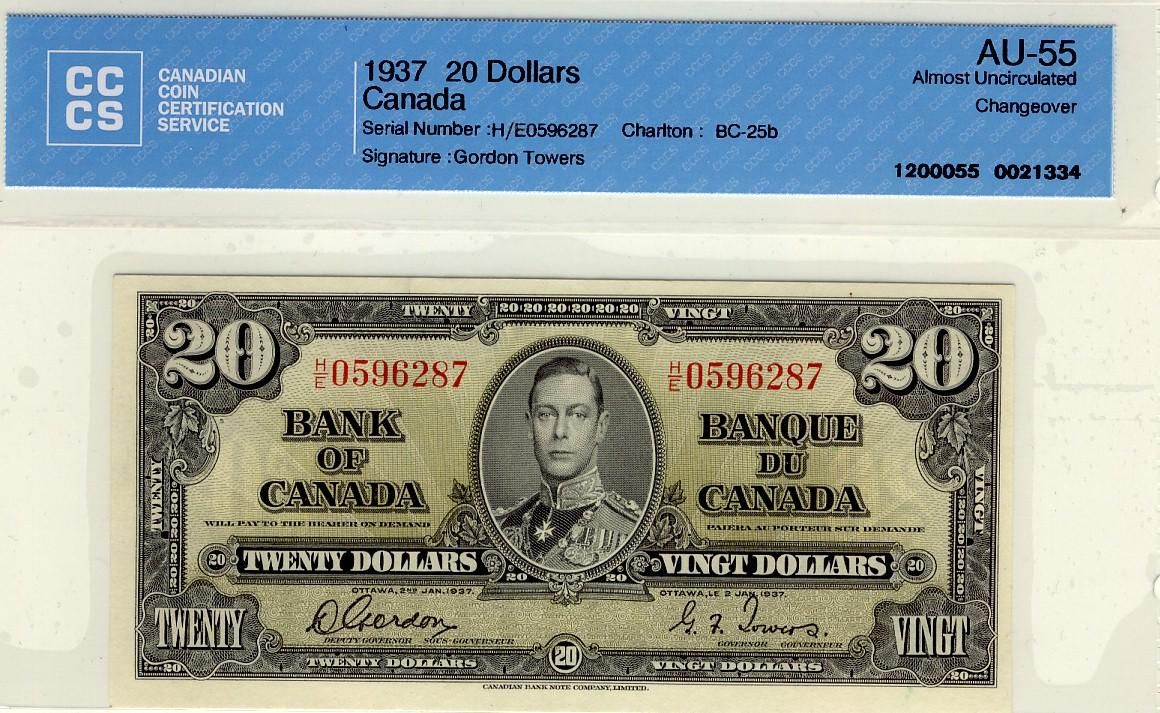 1937 $20 BC25b #HE0596287 CCCS AU55.