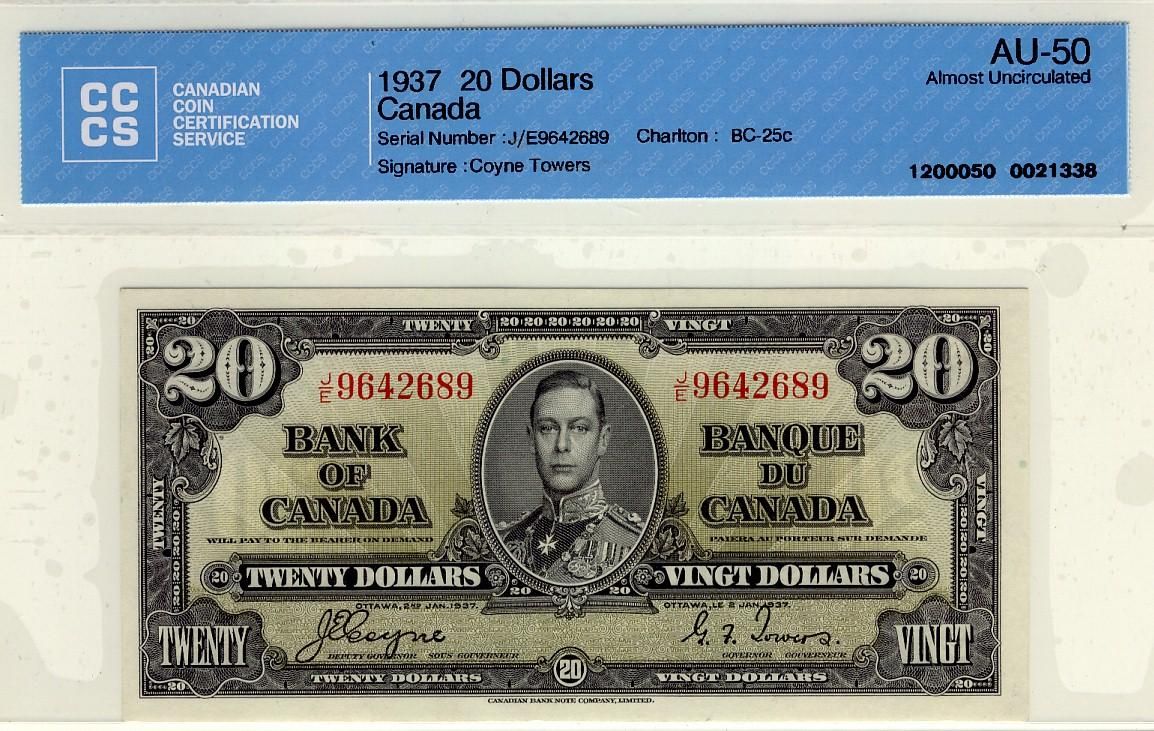 1937 $20 BC25c #JE9642689 CCCS AU50.