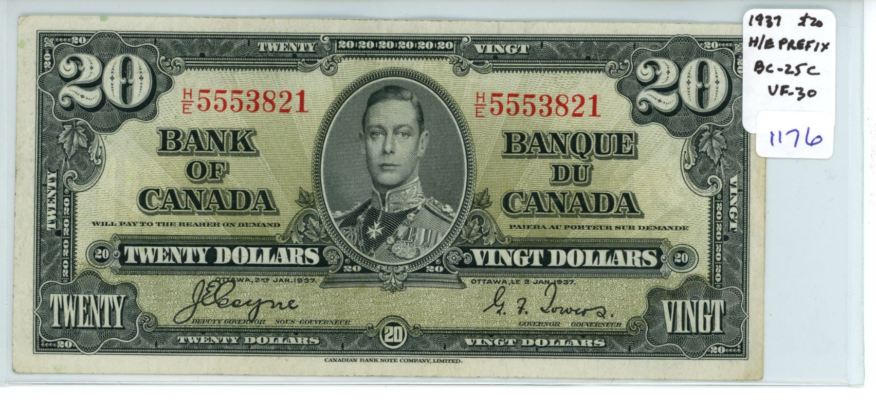 1937 $20. Coyne-Towers signatures. H/E Prefix. BC-25c. VF-30.
