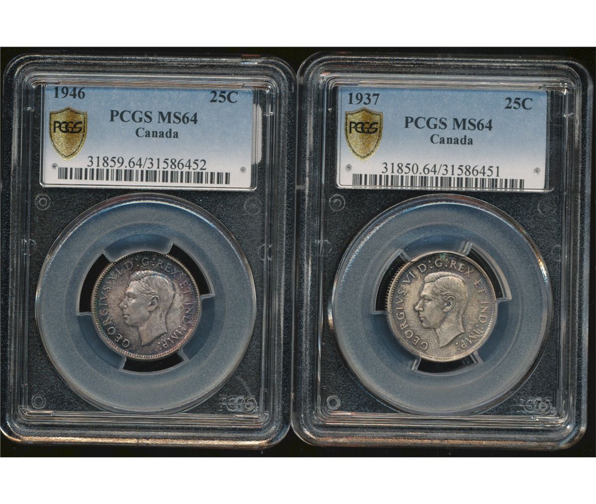 1937 25¢ & 1946 PCGS MS64. Lot of 2 coins.