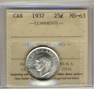 1937 25¢ ICCS MS63