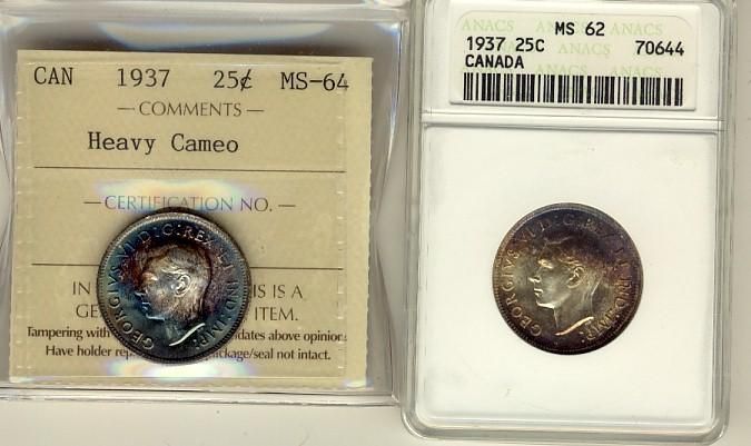1937 25¢ ICCS MS64 Heavy Cameo & ANACS MS62. Lot of 2 1937 25¢ both certified.