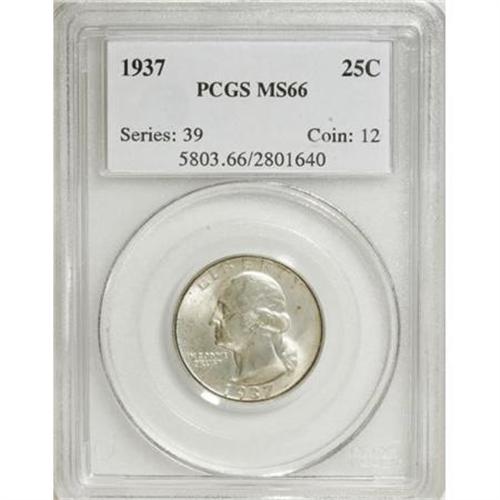 <B>1937 25C MS66 PCGS.</B></I> . PCGS Population (260/49). NGC Census: (252/55). Mintage: 19,701,542. Numismedia Wsl. Price for NGC/PCGS coin in MS66: $185. (#5803)<BR><BR><B>Coin Engraver:</B> John Flanagan<BR><BR><b>Shipping:</b> Coins & Currency (<a target="_blank" href="http://www.heritageauctions.com/common/shipping.php">view shipping information</a>)