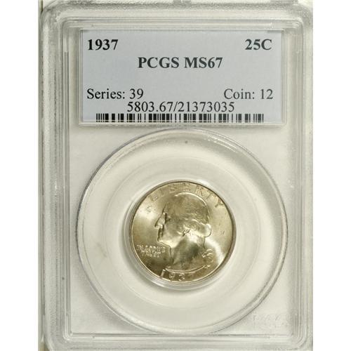 1937 25C MS67 PCGS. Exceptionally lustrous with a spla