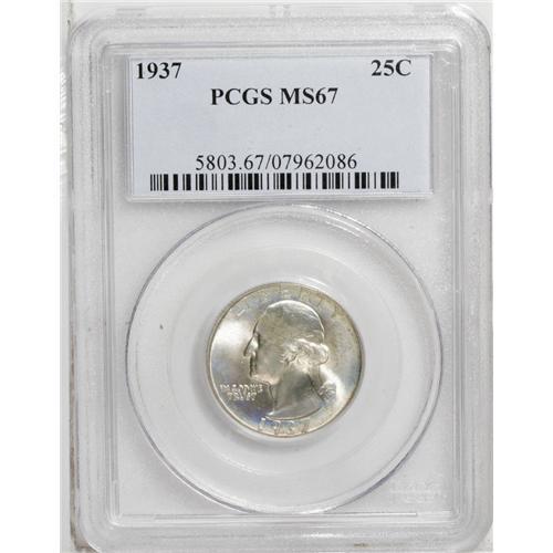 1937 25C MS67 PCGS. Solidly struck and highly lustrous