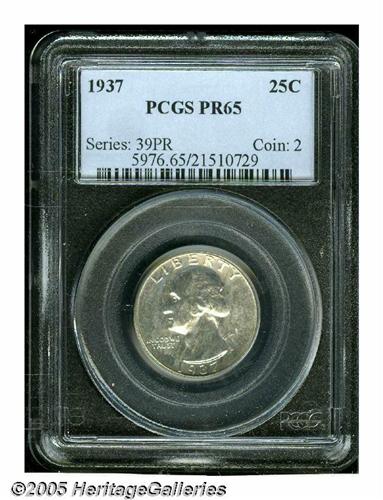 1937 25C PR65 PCGS. Only 5,542 pieces were produc