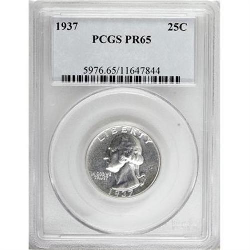 <B>1937 25C PR65 PCGS.</B></I> PCGS Population (448/399). NGC Census: (238/279). Mintage: 5,542. Numismedia Wsl. Price for NGC/PCGS coin in PR65: $460. (#5976)<BR><BR><b>Shipping:</b> Coins & Currency (<a target="_blank" href="http://www.heritageauctions.com/common/shipping.php">view shipping information</a>)