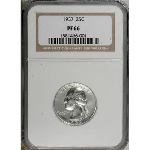 <B>1937 25C PR66 NGC.</B></I> NGC Census: (190/89). PCGS Population (318/81). Mintage: 5,542. Numismedia Wsl. Price for NGC/PCGS coin in PR66: $600. (#5976)<BR><BR><b>Shipping:</b> Coins & Currency (<a target="_blank" href="http://www.heritageauctions.com/common/shipping.php">view shipping information</a>)
