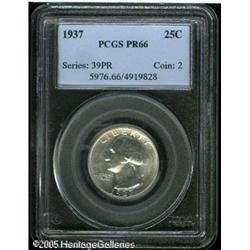 <B>1937 25C PR66 PCGS.</B></I> Virtually untoned and brilliant, nicely struck, and nearly unimprovable surfaces. An attractive early-date Washington Quarter.<BR><I>From The Mike Jacobson Collection.</B></I> Lot:6858