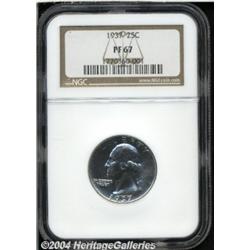 <B>1937<25C> PR67 NGC.</B></I> Brilliant and nearly untoned, except for a hint of dappled milky color in the fields. Sharply struck, with no mentionable marks to report. Population: 58 in 67, 8 finer (7/04). <BR><BR><B>Important notice:</B> Heritage usually auctions material at the rate of 200-250 lots per hour. On some occasions eBay Live bid software or the Internet may not be able to keep up with the pace of the auction. We recommend placing a realistic absentee bid now as insurance to avoid disappointment. Occasionally the auctioneer may eliminate or reject an eBay Live bid, and the auctioneer may also reopen a lot after the close of the eBay live bidding (usually because we missed an audience bid), and may reject your bid even if it shows you as the winning bidder. By bidding via eBay Live, you agree that Heritage may award the lot to another bidder at its sole discretion under the circumstances described above or any other reasonable circumstances. Since eBay bids are not shown to us until we open the lot on the floor, we treat those bids just like floor bids. In most cases the floor responds before the eBay bid is presented to us, due to Internet lag time, so for consistency we have made it a policy that floor bids are always considered first over tie eBay live bids. Also please note that all Heritage lots purchased through eBay Live carry a 20% Buyer's Premium. Please make sure you read the Terms and Conditions before you bid. </span></font></tr></table></td></tr></table>