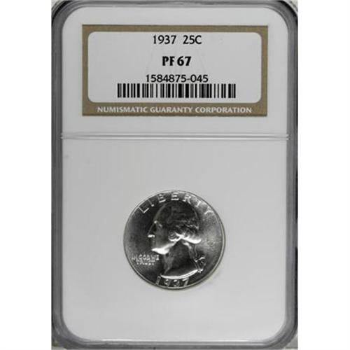 <B>1937 25C PR67 NGC.</B></I> Full brilliance with exceptional surfaces, this Superb Gem has mirrored fields with a hint of frost on the devices. Few finer examples have been certified, 11 by NGC and two by PCGS.<BR><BR><B>Coin Engraver:</B> John Flanagan<BR><BR><b>Shipping:</b> Coins & Currency (<a target="_blank" href="http://www.heritageauctions.com/common/shipping.php">view shipping information</a>)