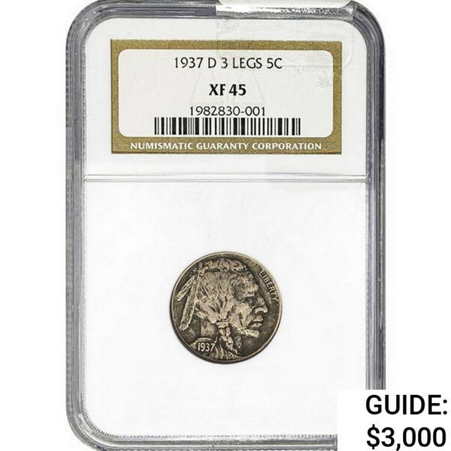 1937 3 LEGS Buffalo Nickel NGC XF45
