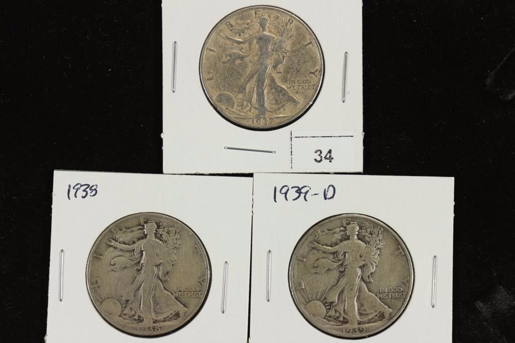 1937, 38 & 1939-D WALKING LIBERTY HALF DOLLARS