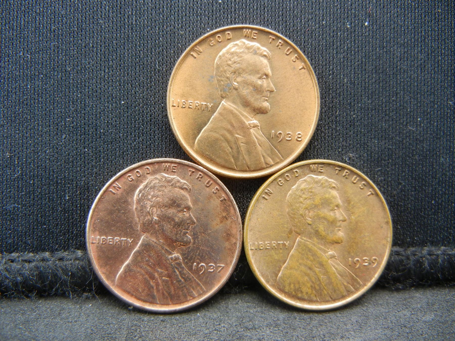 1937, 38, 39 Wheat Cents