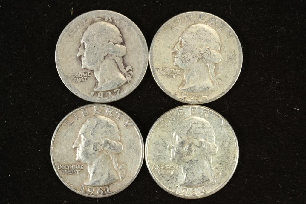 1937,45,61-D & 64 WASHINGTON SILVER QUARTERS