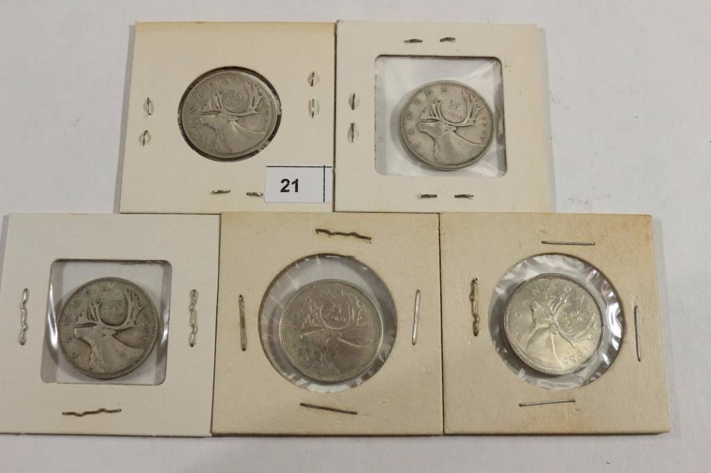 1937,47,48,63 & 65 CANADA SILVER 25 CENTS