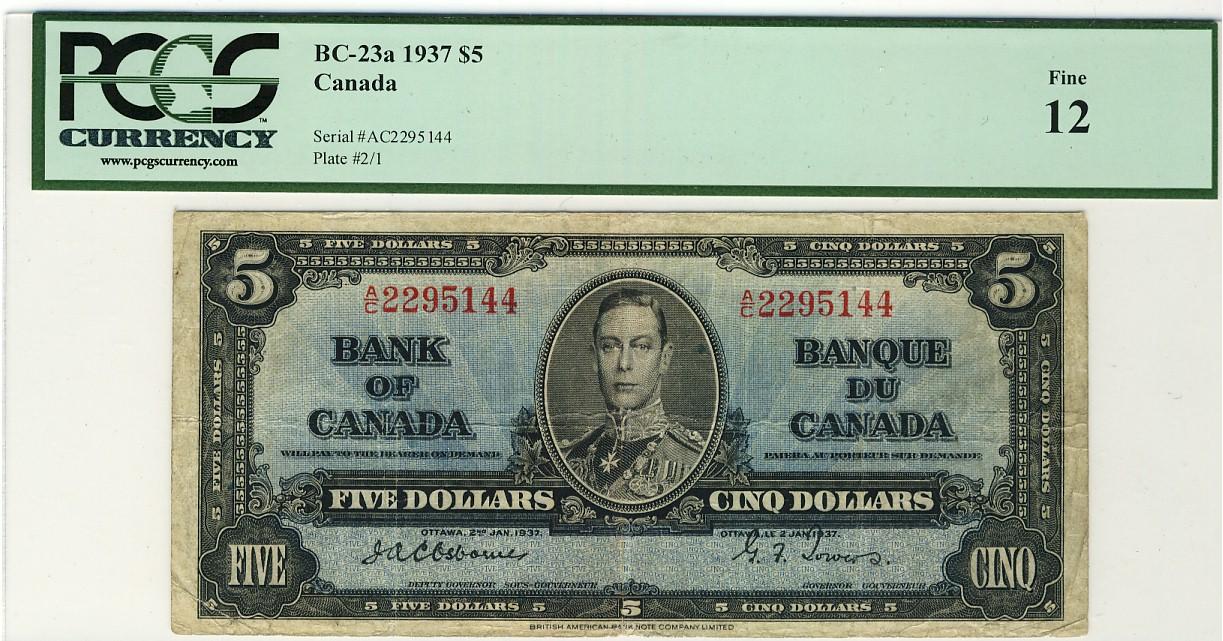 1937 $5 BC-23a #A/C2295144 PCGS F12