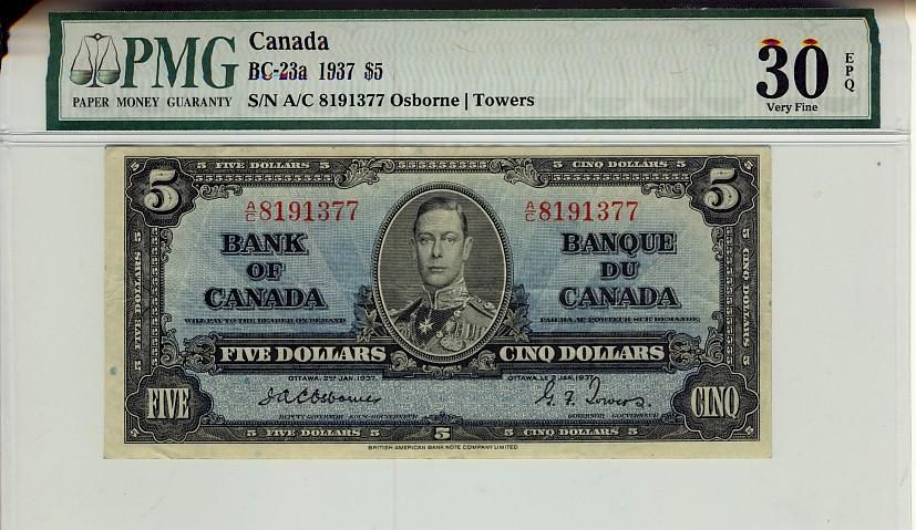 1937 $5 BC-23a A/C8191377 PMG VF30 EPQ