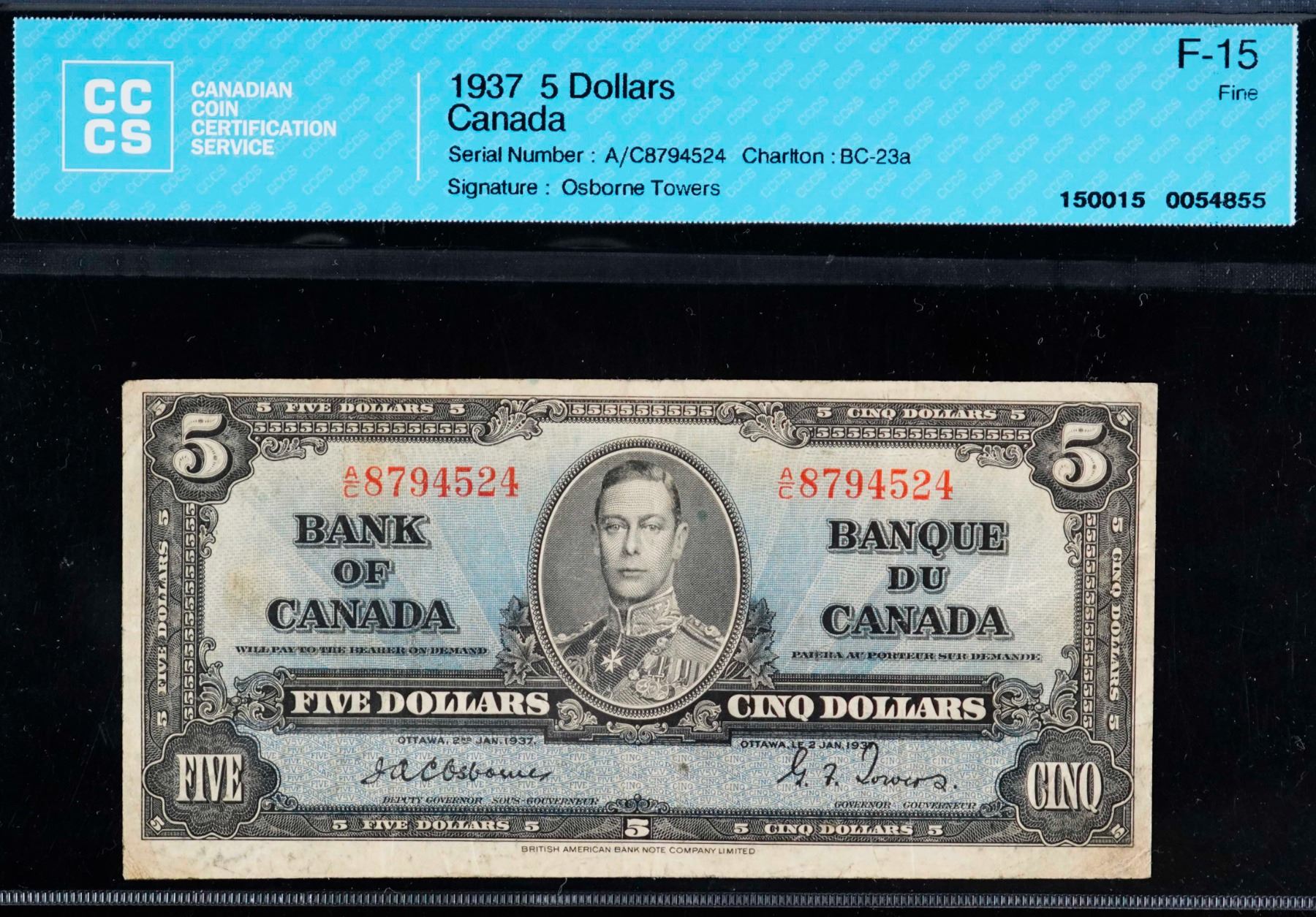 1937 $5 BC-23a #A/C8794524 CCCS F15