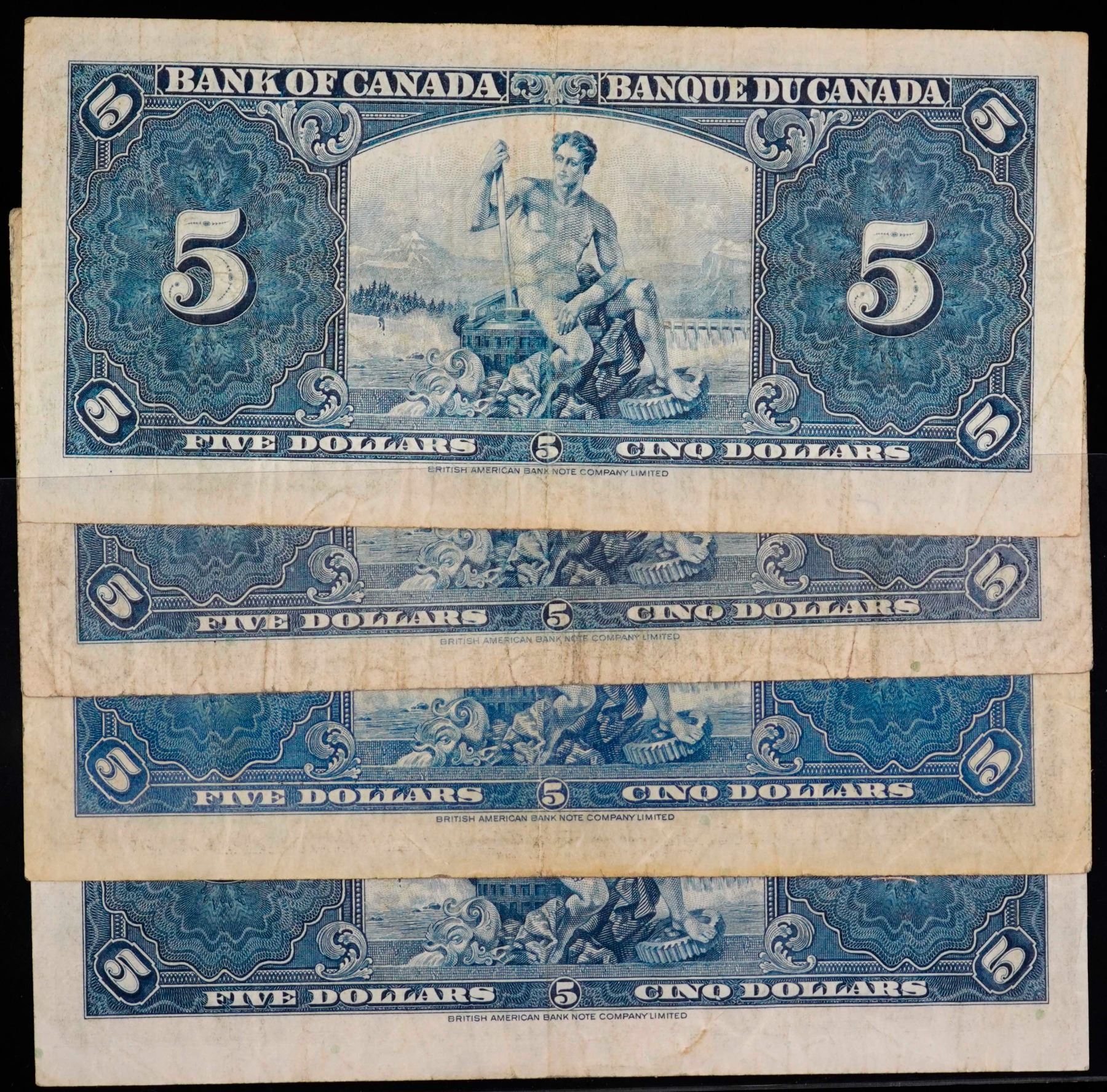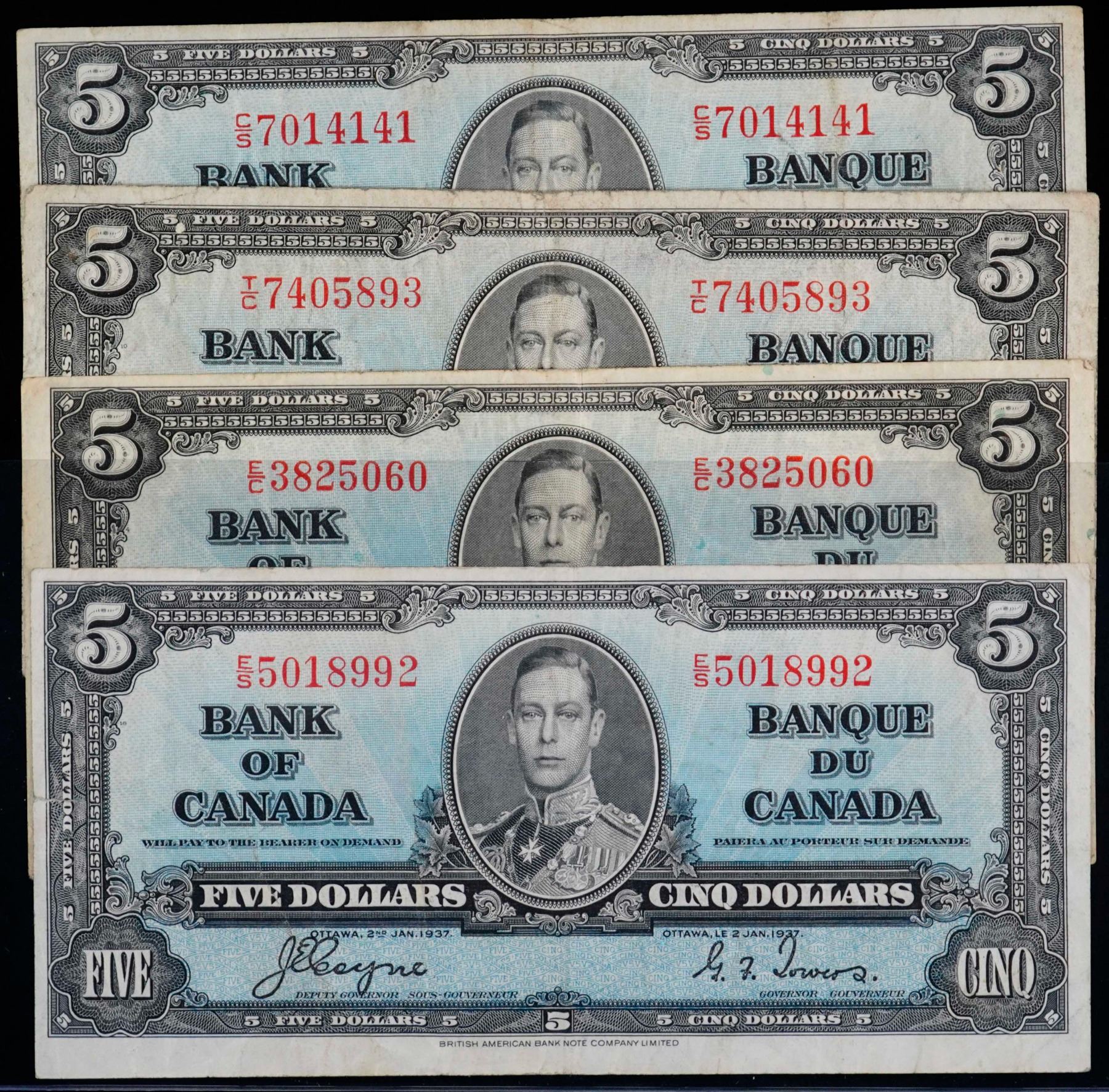 1937 $5 BC-23b & 23c F+ to VF, Lot of 4 notes.