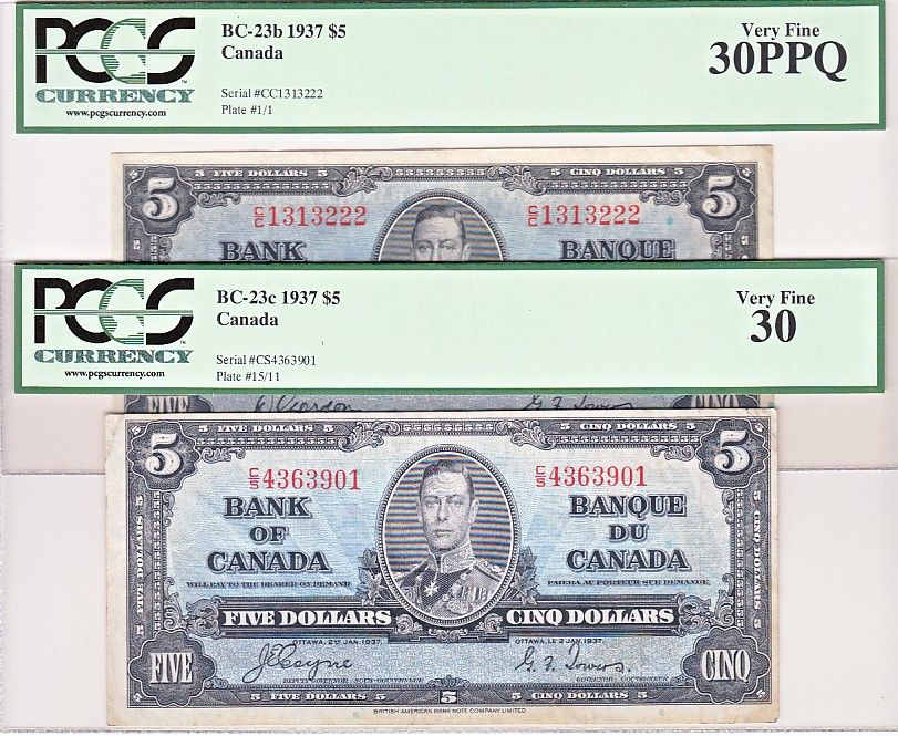 1937 $5 BC-23b & BC-23c PCGS VF30. Lot of 2 notes.