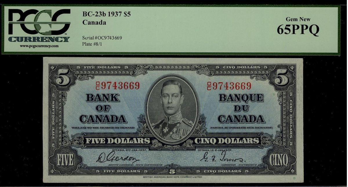 1937 $5 BC-23b #O/C9743669 PCGS UNC65PPQ