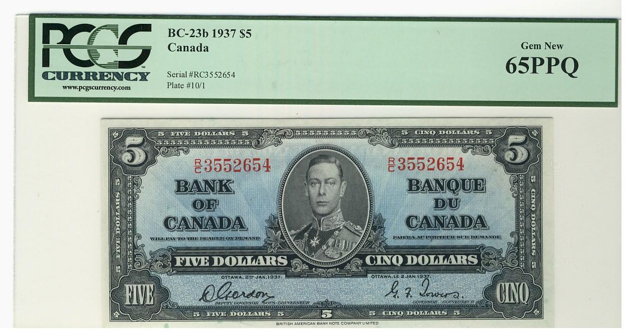 1937 $5 BC-23b #RC3552654, PCGS Gem UNC65PPQ.