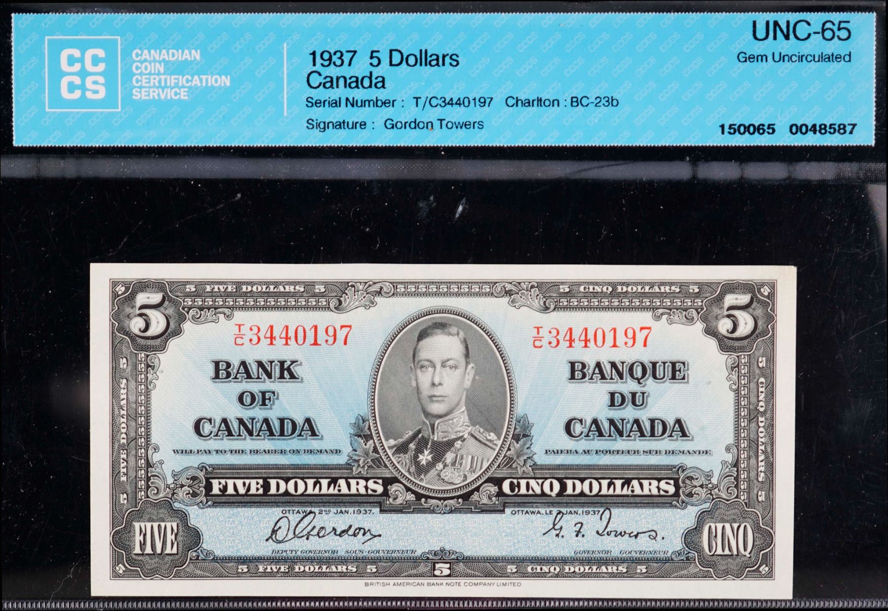 1937 $5 BC-23b #T/C3440197 CCCS Gem Uncirculated-65