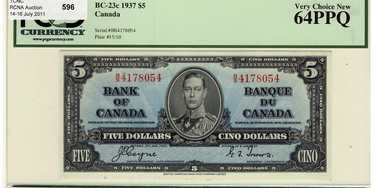 9. The cataloguer has taken every reasonable measure to ensure that all of the lots in this sale are as described and genuine. All raw coins and banknotes have been graded by the cataloguer or the auction house which represent our best professional opinion. To grade coins and banknotes, we use Canadian grading standards, 31 years of experience and good conscience. Grading is a subjective description in the opinion of the cataloguer or the auction house. Among experts there are often differences of opinion on the grading and the eye appeal of a coin. The strike and the state of preservation are often debated. TCNC acts as an agent between consignors and buyers. TCNC does not guarantee that any coin or banknote catalogued will meet the standards, or the grade, of any third party grading companies. No warranty, whether impressed or implied.