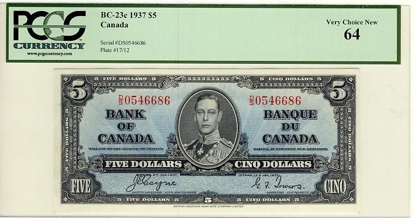 1937 $5 BC-23c D/S0546686 PCGS UNC64
