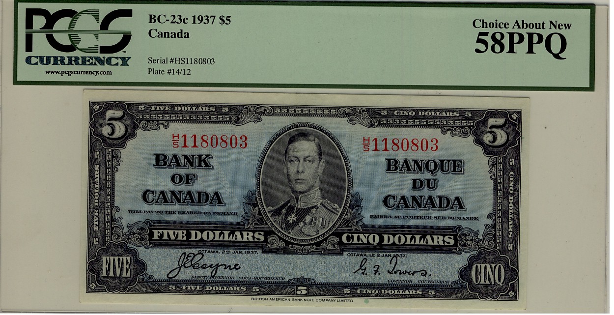 1937 $5 BC-23c H/S1180803 PCGS AU58PPQ