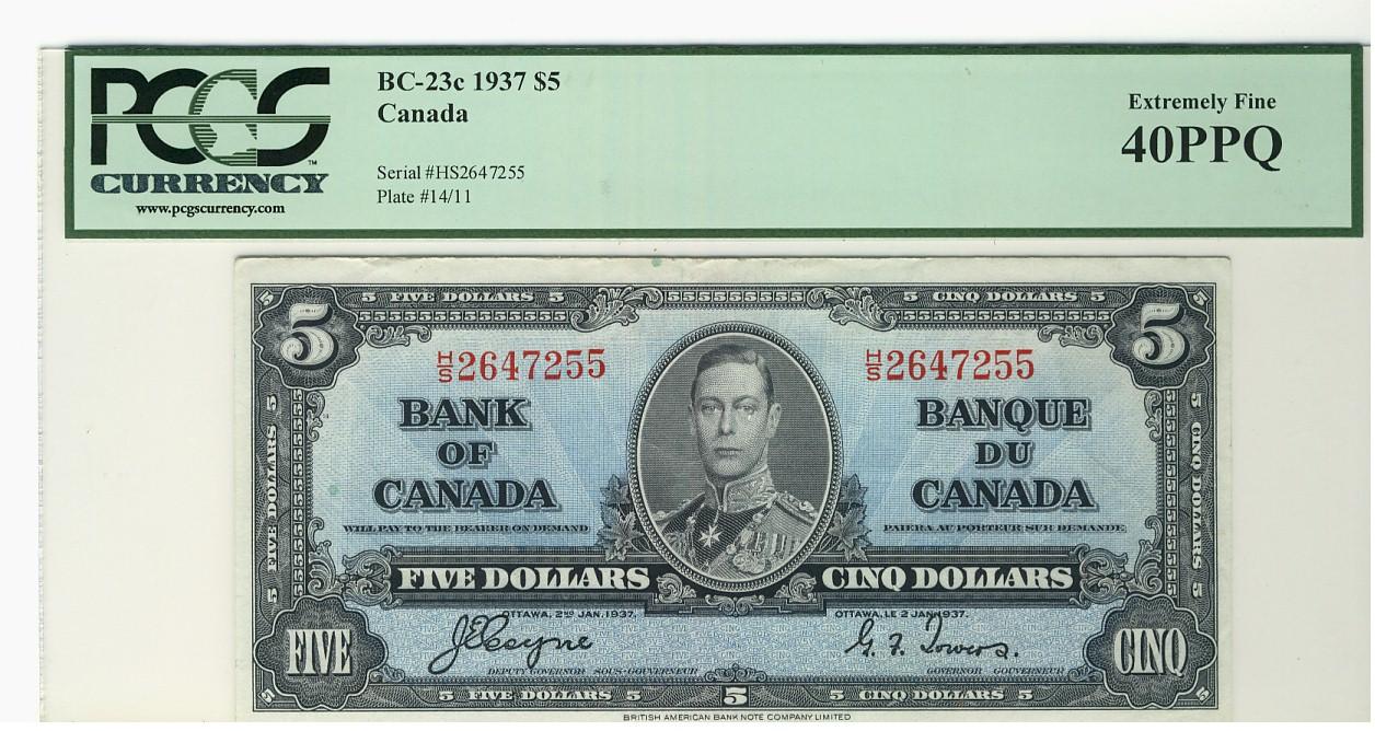 1937 $5 BC-23c #H/S2647255 PCGS EF40PPQ