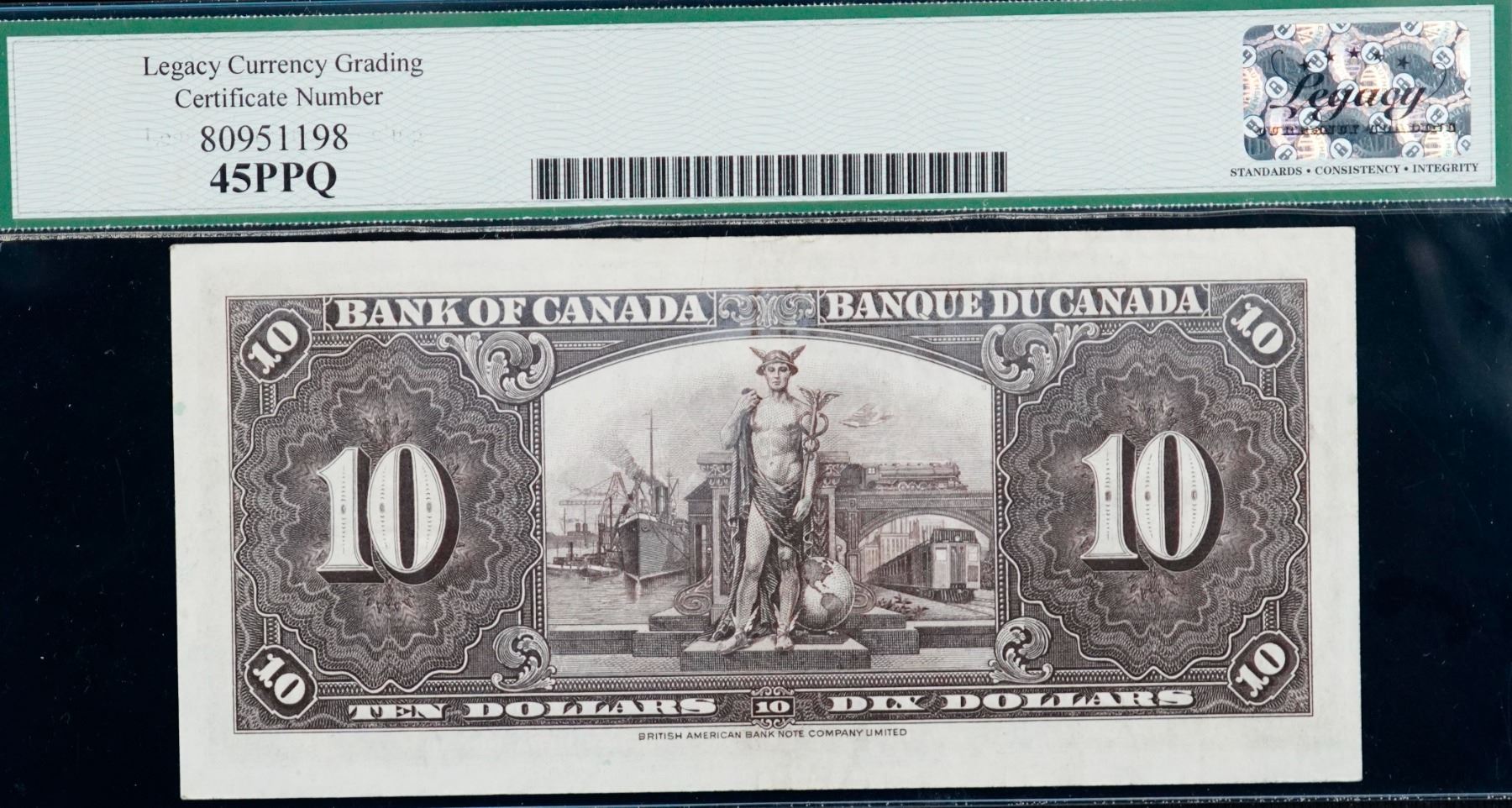 The cataloguer has taken every reasonable measure to ensure that all of the lots in this sale are as described and genuine. All raw coins and banknotes have been graded by the cataloger or the auction house which represent our best professional opinion. To grade coins and banknotes, we use Canadian grading standards, 42 years of experience and good conscience. However, grading is a subjective description in the opinion of the cataloger or the auction house. Among experts there are often differences of opinion on the grading and the eye appeal of a coin. The strike and the state of preservation are often debated. The Canadian Numismatic Company acts as an agent between consignors and buyers. The Canadian Numismatic Company does not guarantee that any coin or banknote cataloged will meet the standards, or the grade, of any third party grading companies. No warranty, whether impressed or implied. Items are as is, no warranty given. We cannot accept responsibility and waive all liability resulting in financial losses, and or incidentals accruing from the sale of any items, nor can we guarantee that items graded by third party services will grade the same if submitted to a different grading service or re-submitted to the same company. Statements by The Canadian Numismatic Company regarding the condition, the eye appeal, the strike and the population of items are for guidance only. All lots offered are sold "AS IS". Title to all lots remains with the auction house until paid for in full by the purchaser. But they are held at the risk of the purchaser once the time of the sale.
