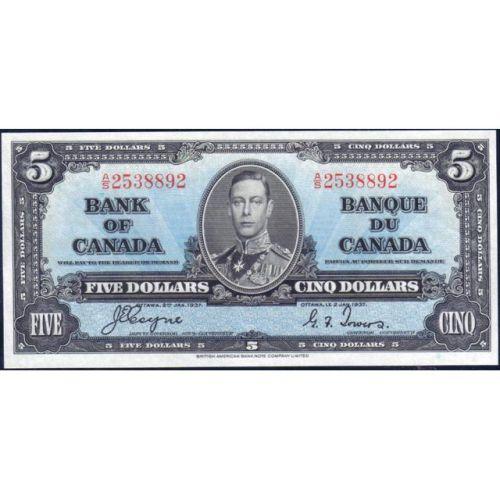1937 Five Dollars Coyne-Towers, BC-23c Serial Number A/S2538892. Well centered, PMG Gem Uncirculated 65 Exceptional Paper Quality