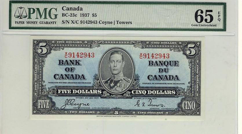 1937 $5 BC-23c X/C9142943 PMG UNC65 EPQ
