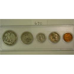 1937 5 Coin Silver Year Set. Vintage US coins.