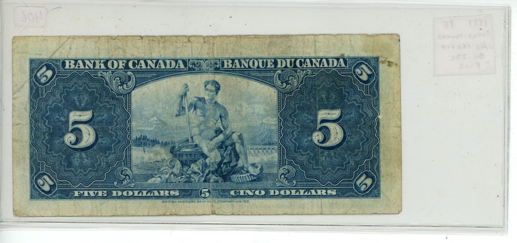 1937 $5. Coyne-Towers signatures. D/S Prefix. BC-23c. F-12.