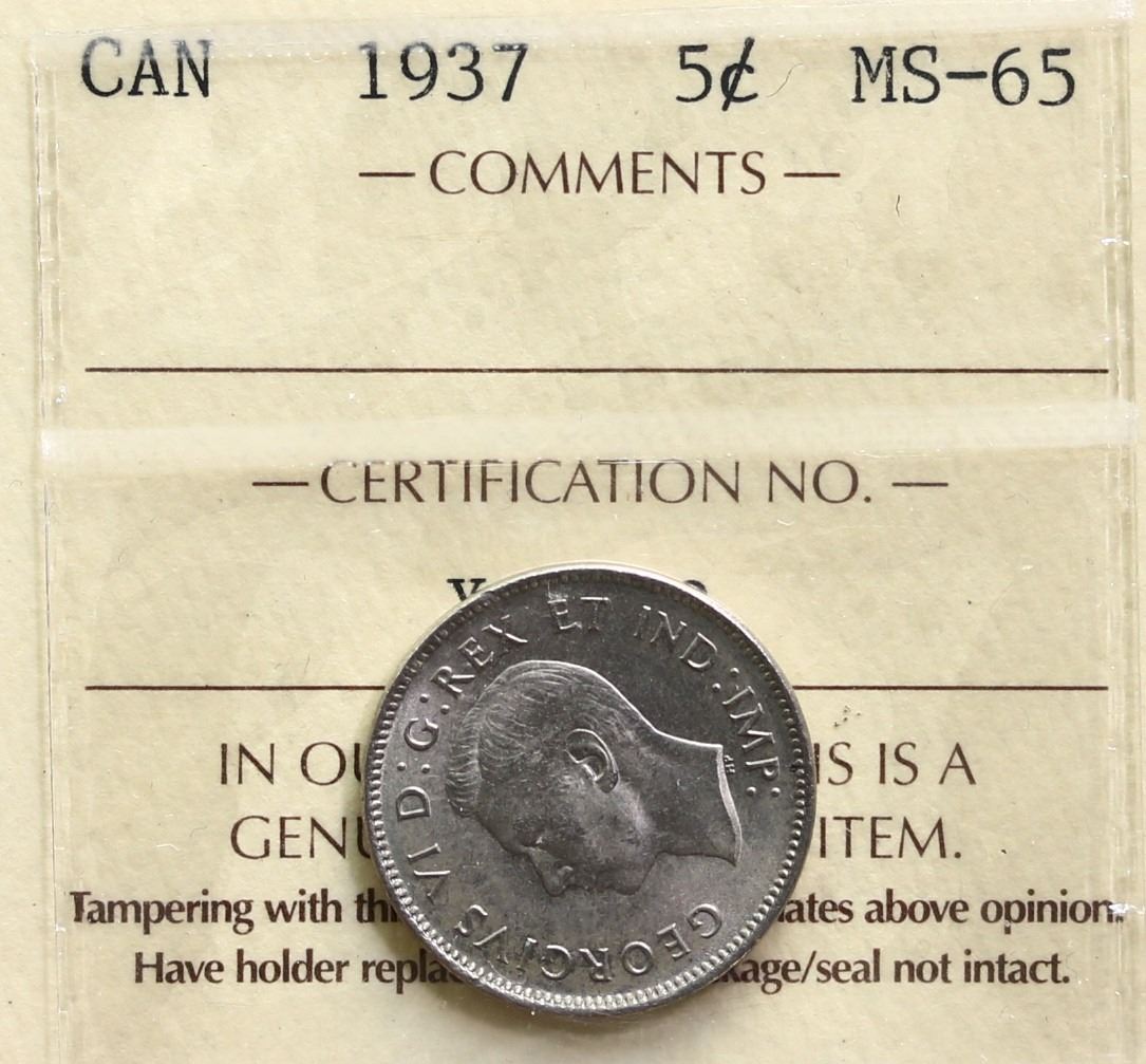 1937 5¢ "Dot" ICCS Gem Mint State-65. Nice Gem example.